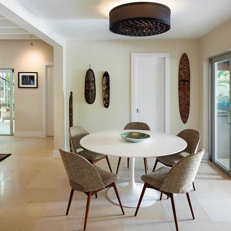 The Catacaos is a sophisticated update on the ancient South American handcrafted technique called Filigrana in which small metal pieces are combined to create a large spiral pattern. This flushmount and its pendant cousin won the Best of Year award from Interior Design magazine.