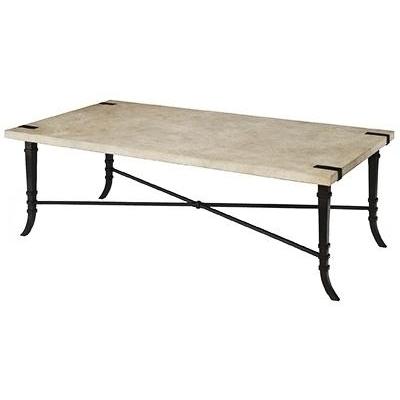HAMMERED SUSPENDED IRON COFFEE TABLE WITH CAPRI LIMESTONE TOP