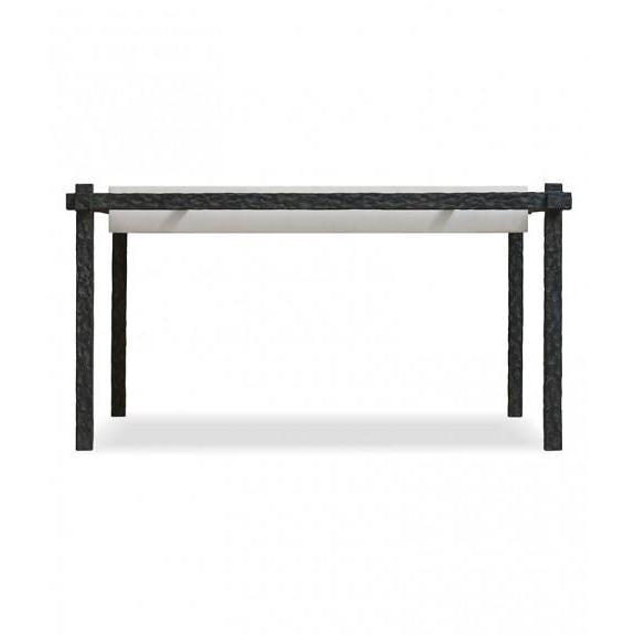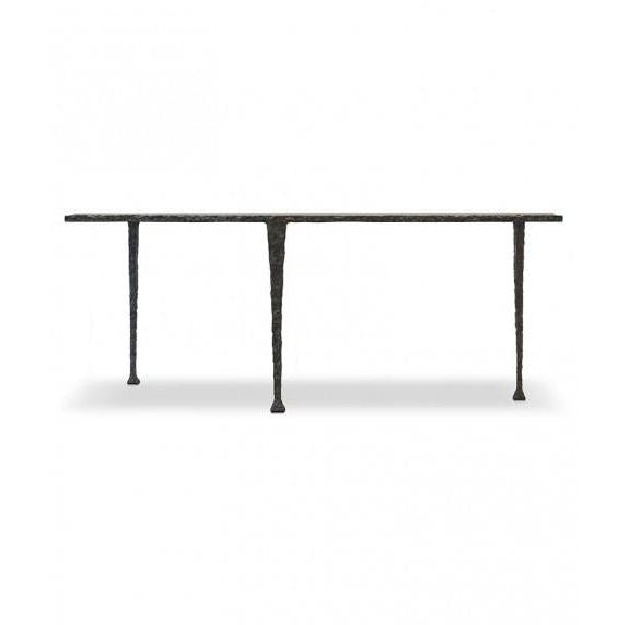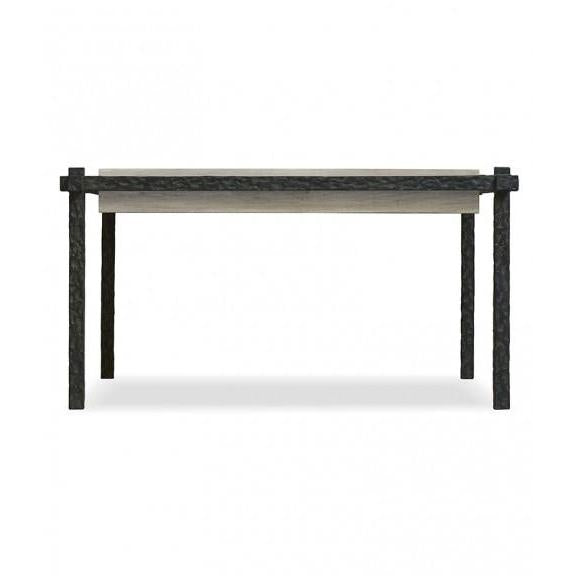 HAMMERED SUSPENDED IRON COFFEE TABLE WITH CAPRI LIMESTONE TOP