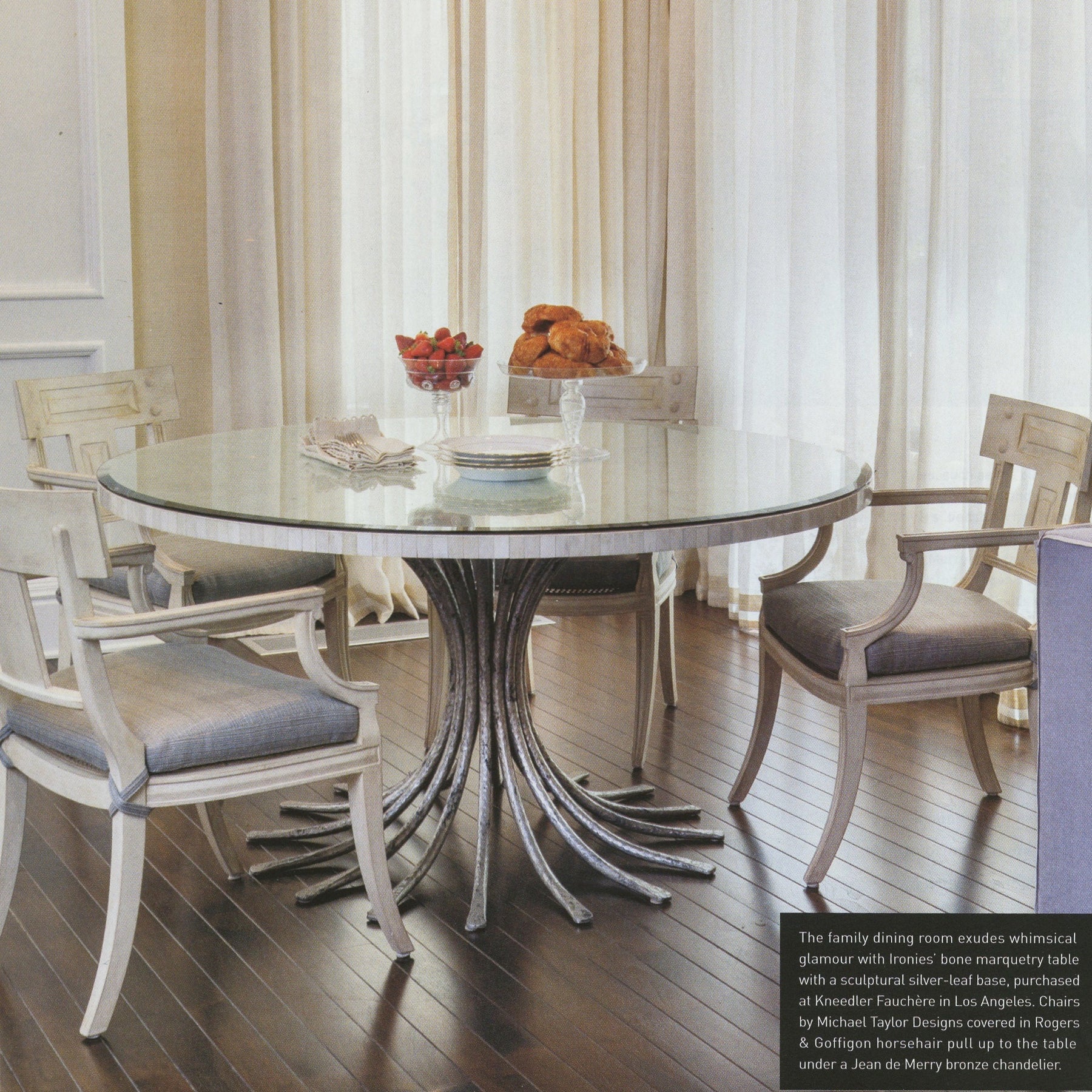 Details: Symmetrical splay of hand-hammered iron in pedestal form. Small 411-03 for 36" to 44" diameter tabletops. Medium 411-01 for 46" to 54" diameter tabletops. Large 411-02 for 54" to 60" diameter tabletops .