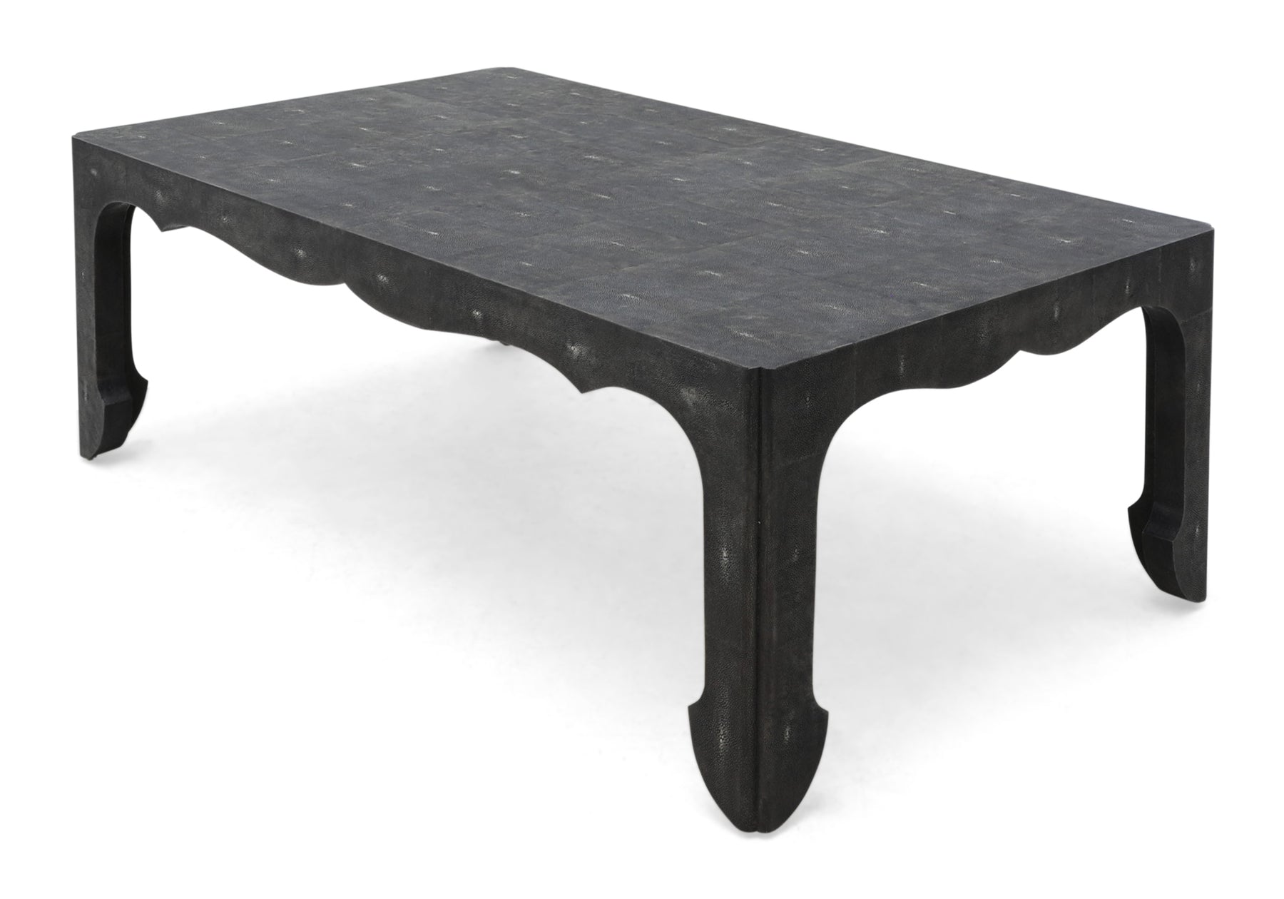 Details: Classic curved leg cocktail form with hand applied artisan veneers. Available in pen shell. Available in faux bone available in standard shagreen finishes.