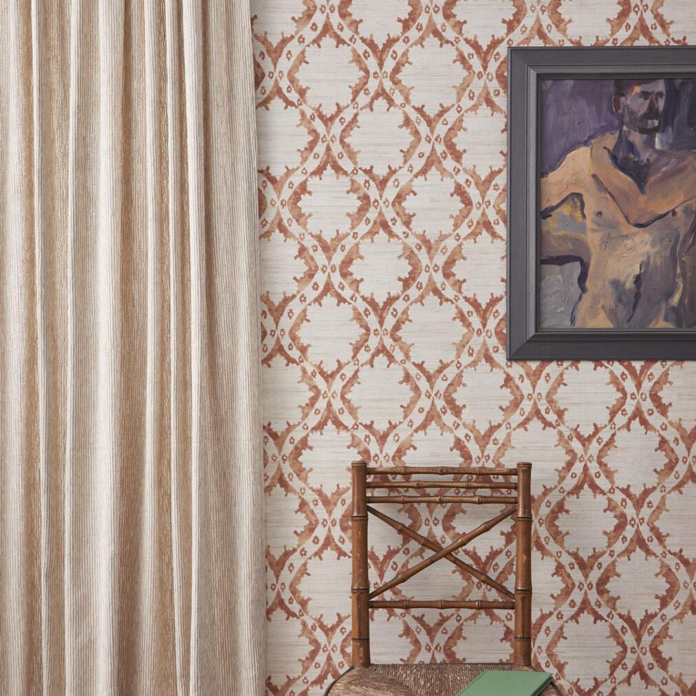 Details: Taking its form from a classic gothic arch, the motifs of Ogive fall into an easy and classic repeat. The water colour rendering of the artwork brings extra interest to this simple and airy design on a grasscloth ground.
