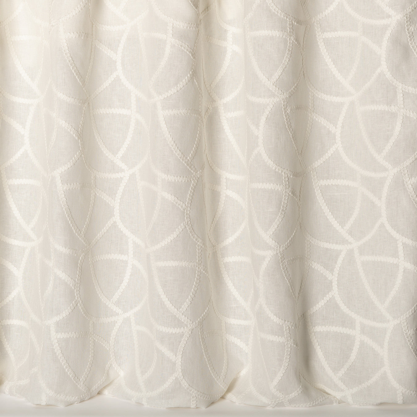 Details: While the embroidered cords applied to Fréjus gives it a heavy and full drape, its regular interlacing forms a large mesh sometimes tone-on-tone, sometimes contrasted. This wide width can be used both directions.