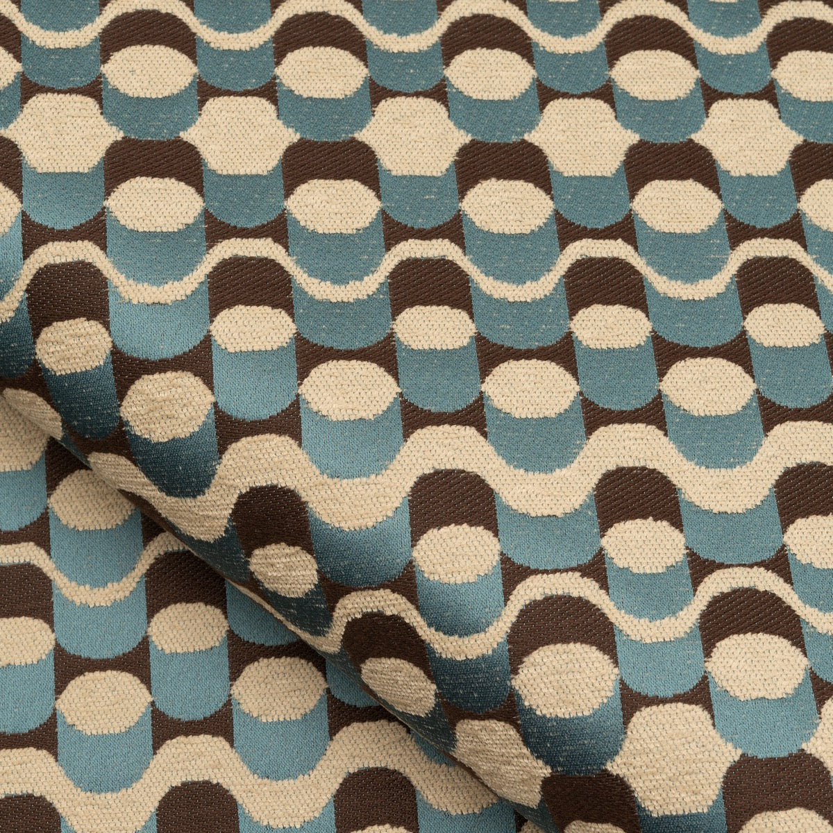 Details: Mira jacquard combines a mat chenille yarn and a satiny warp to draw a small contrasted pattern in a tie spirit.