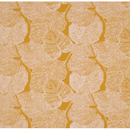 Reminiscent of a delicate lacey leaves, this large chain stitch embroidery traces the veins of a bed of leaves.