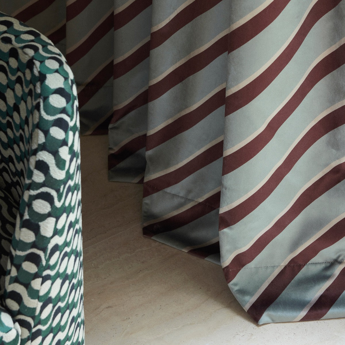 Details: The XXL tie stripe invites itself on Velours Oblico with a subtle sheen in precious-like hues.