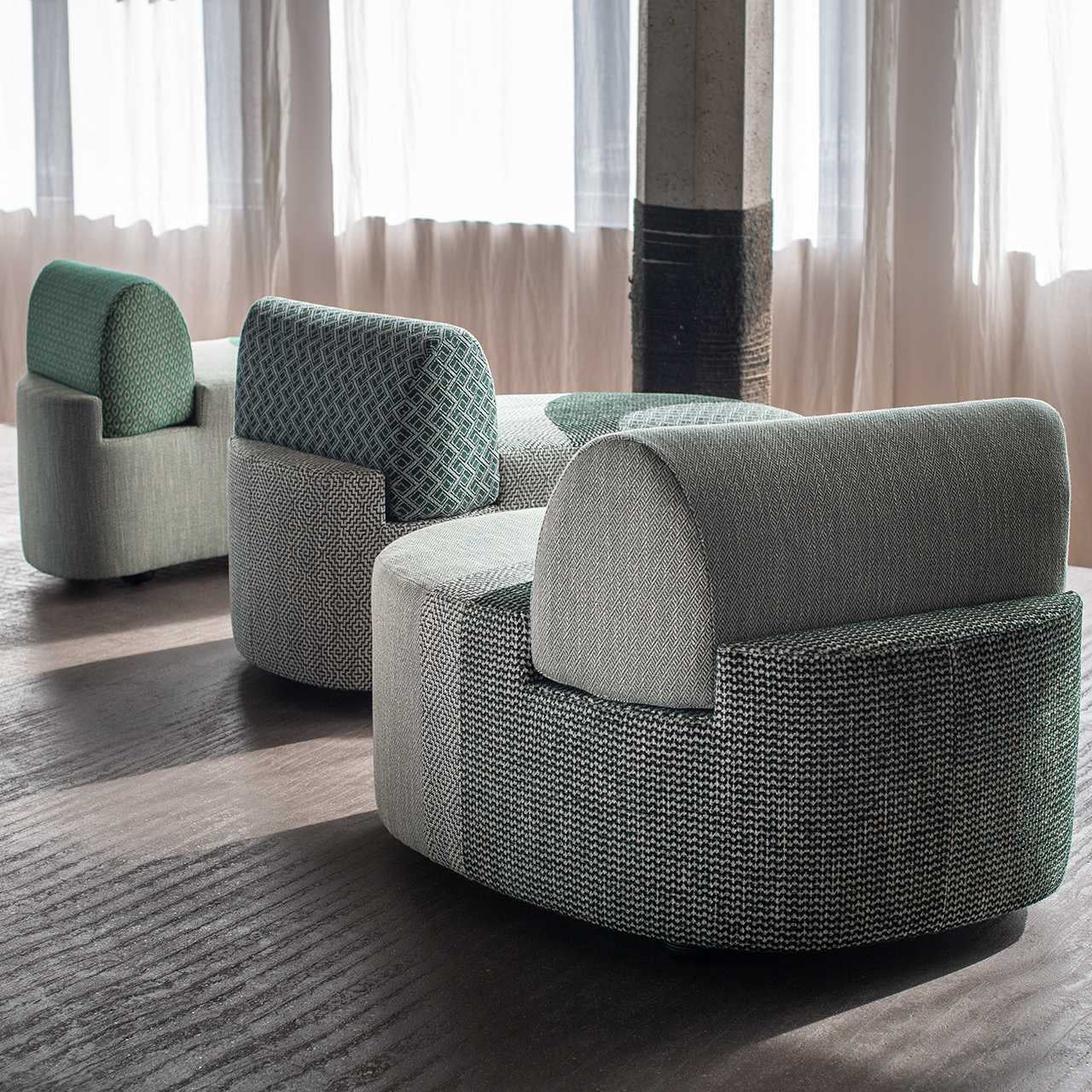 This collection of geometric weaves are a nod to the great architects of our civilization, presented in a spirit of versatile construction. The interplay of weaves, materials and colors builds a family of solid, yet creative fabrics with multiple applications and perfect coordination.