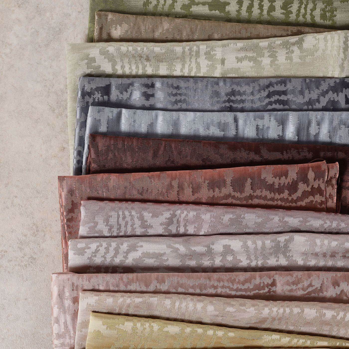 Details: This Moiré-style design was drawn from the archive and recreated as a woven jacquard, its matt-and-shine effect creating the illusion of watered silk. A favourite of Henry Holland, Henry's wedding suit was a Moiré fabric in Neptune Green. Elsworthy can be layered into interiors in cushions and blinds for dramatic effect, with the Elsworthy wallpaper creating a cocooned look.