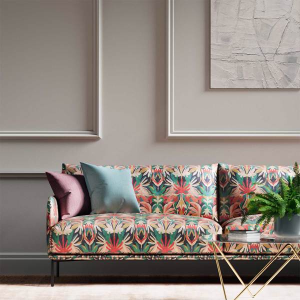 Description: Packed full of vibrant colour, this striking modern damask is printed on a luxurious 100% cotton velvet. With a hand-printed look and feel, it’s suitable for both upholstery and drapes. Also Available as a wallpaper.