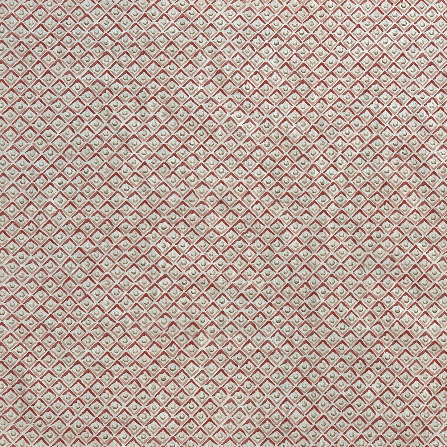 Details: The softly painted detail within the motifs of Marmorino is recreated here as an allover small scale geometric, printed on a slubby cotton and linen mix. Available as a wallcovering of exactly the same colour and scale.