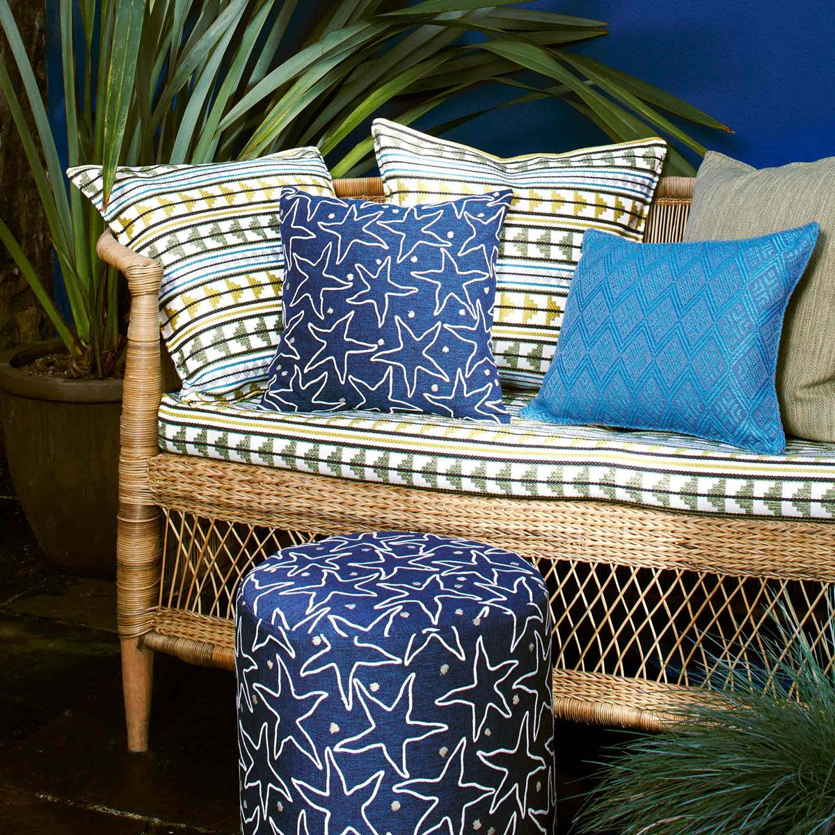 Details: Embroidered with fine pp yarns on our best-selling Palm Plain ground, this playful design brings a fresh and graphic dimension to the collection. The randomly placed starfish are interspersed with sea pearls.