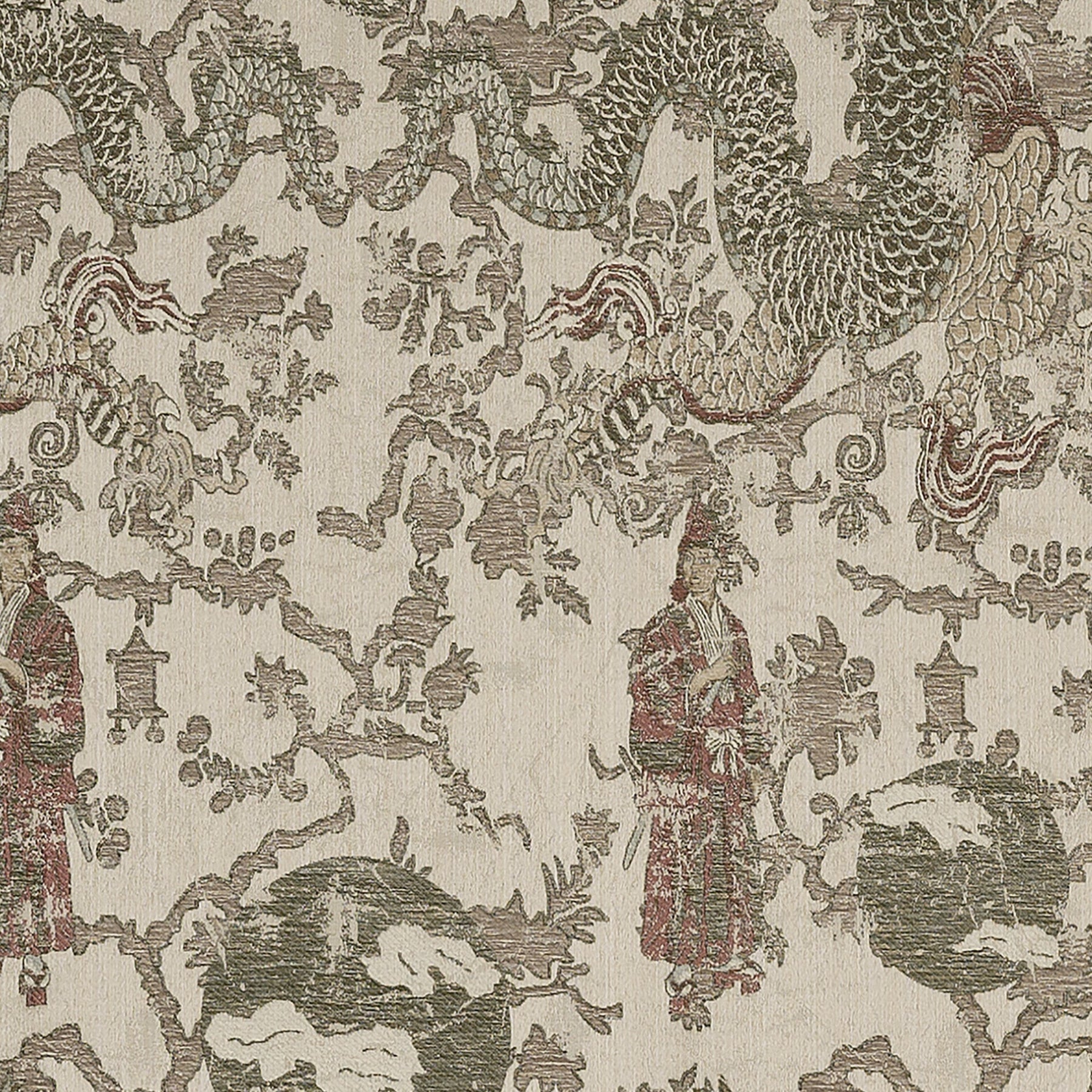 Description: Evocating the fantasised 19th century Orient, Opium is a sumptuous chinoiserie playing with the norms in its colouring. The five variations of this jacquard and its richness in the details highlight its magnificence.