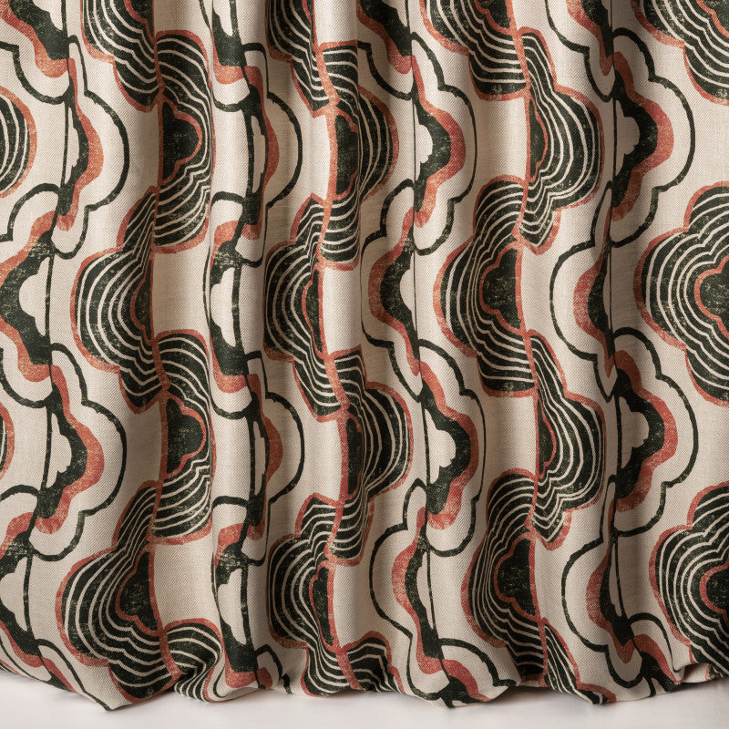 Description: The 70’s patinated fresco Sora, unfolds on an antique linen twill. Its pattern with organic and soft nuances, sometimes vibrant, enlivens a natural chic background.