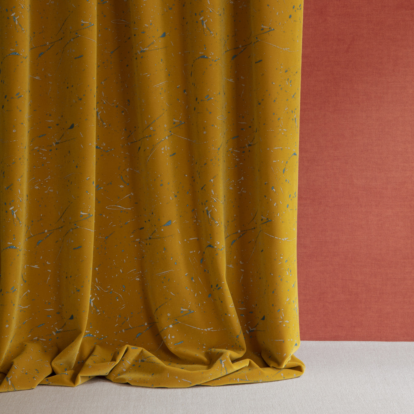 Description: Printed in two-tone on backgrounds in vibrant and contemporary colors, the stain pattern of Velours Fever is a tribute to Jackson Pollock's dripping paintings. He will liven up the furniture and spaces with rhythm and daring.