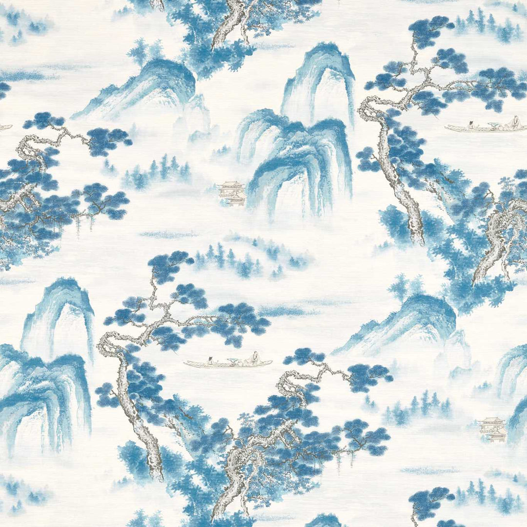 Fleurette - Ming Blue on Sea Mist Wallcovering