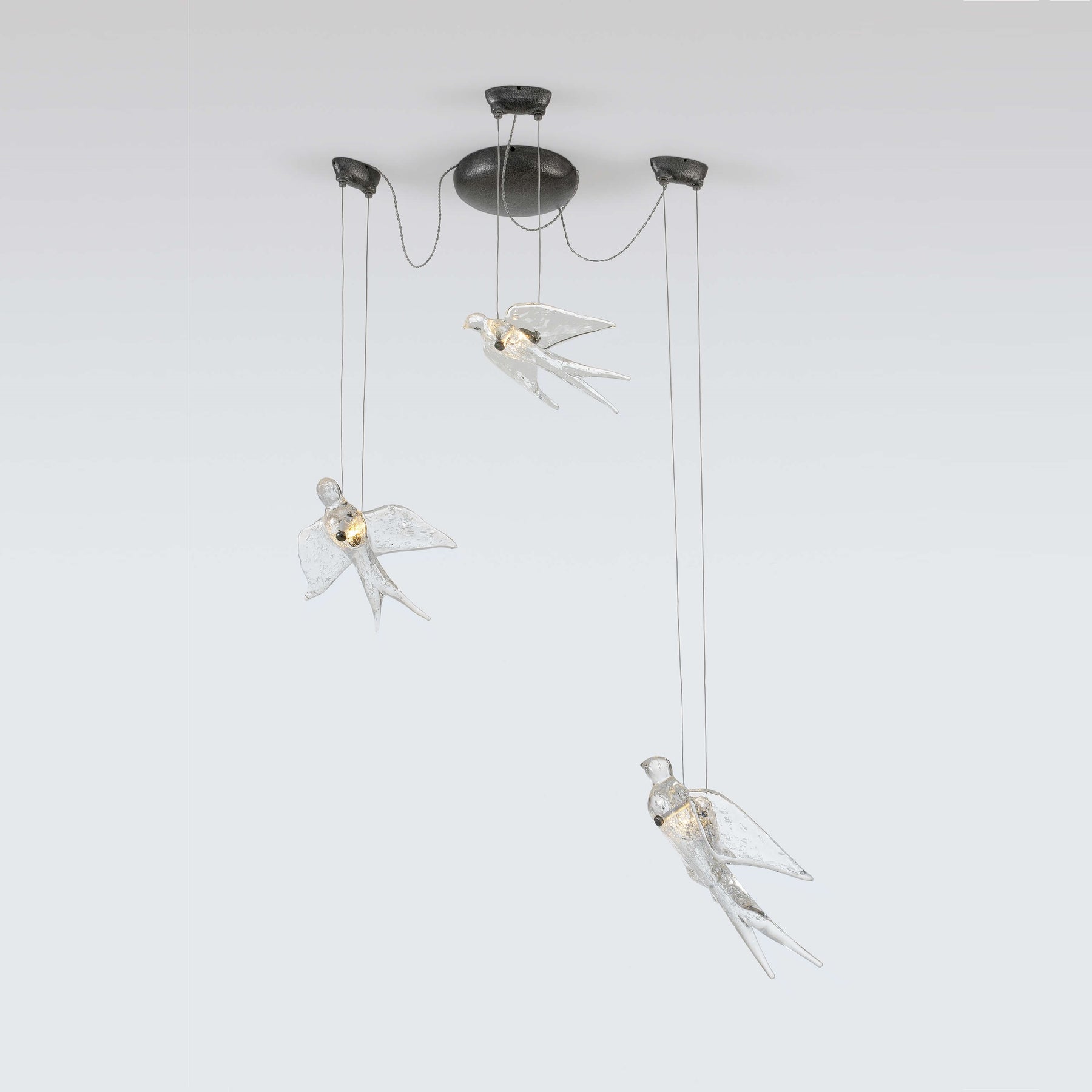 Inspired by Portuguese soul and a dramatic game of shadows and light. This marvellous species of swallows known as Hirundo Rustica presents spectacular ballets where they paint the skies like ballerinas. Their funnel-shaped bodies are also a Portuguese icon, which translates our soul in movements and shapes. The unfindable configurations that they perform allow this singular collection to create beautiful visual compositions. Either in suspension or standing on the walls, they create a dramatic game of shadows and light. Also, they can stay aligned, side by side, in an extreme organic and sharp textured tree branch creating extraordinary contrasts with the smooth and fluid shapes of their bodies.?Ideal for any orientation composition, creating games of shadows and light for classic and contemporary interiors. ?Perfect for hospitality projects.
