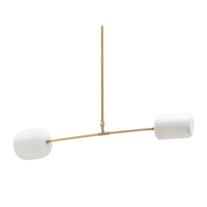 Inspired by a desire to create a fixture that reaches and spreads through space, the Equi chandelier relies on finding its balance points to create a composition of subdued elegance. Both a mobile and chandelier, the Equi uses custom metal components to hinge and pivot hand blown glass shades at various distances. The final effect is one of deceptive simplicity. The Equi is available in three distinct variations that can stand alone or work in concert to create a fixture that can fill any size environment.