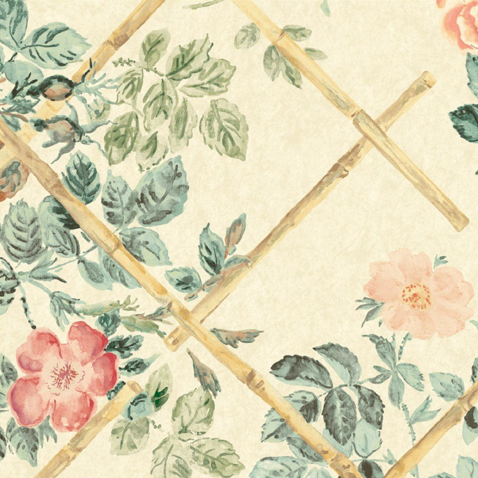 Rose Trellis Wallpaper - Cream/Pink